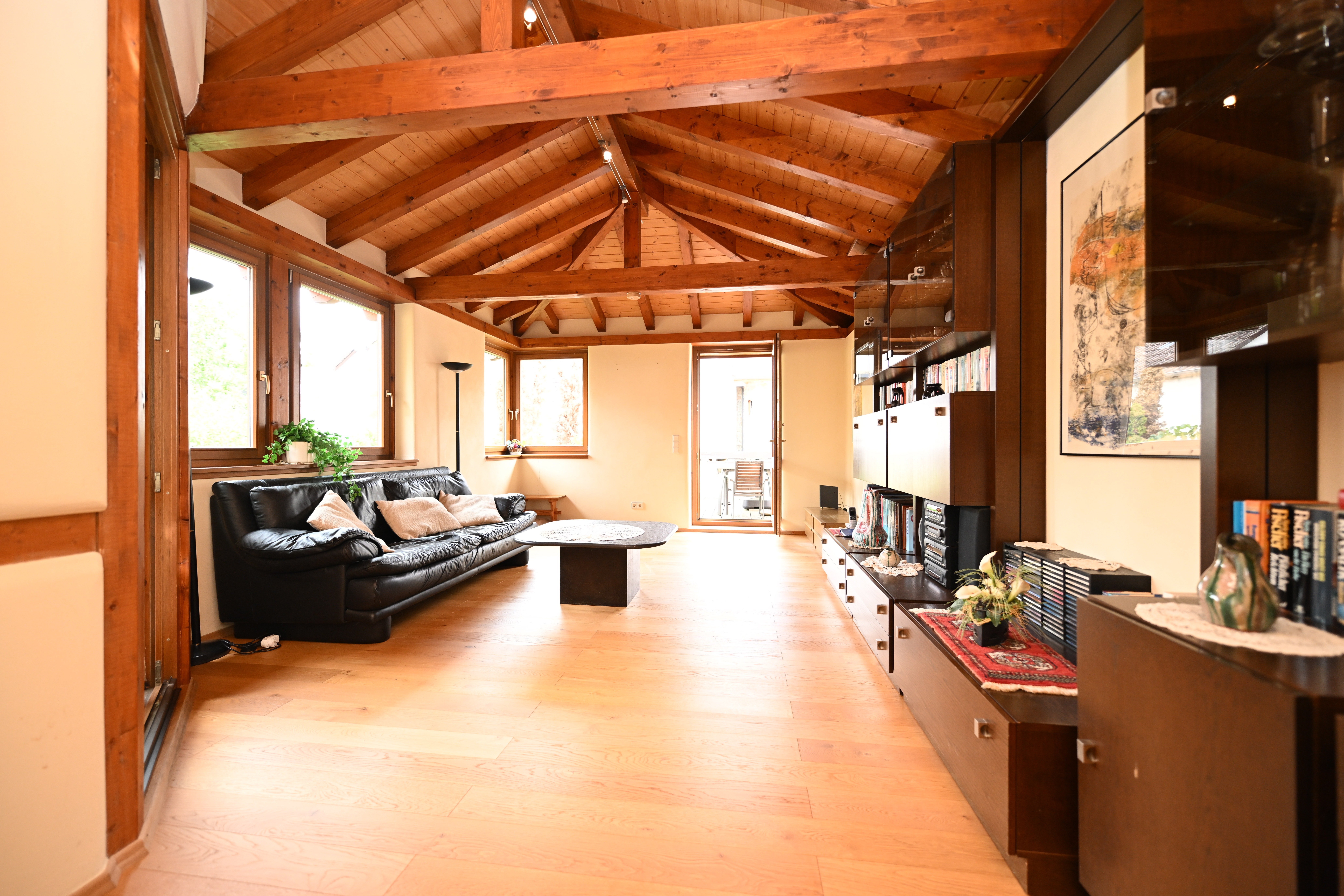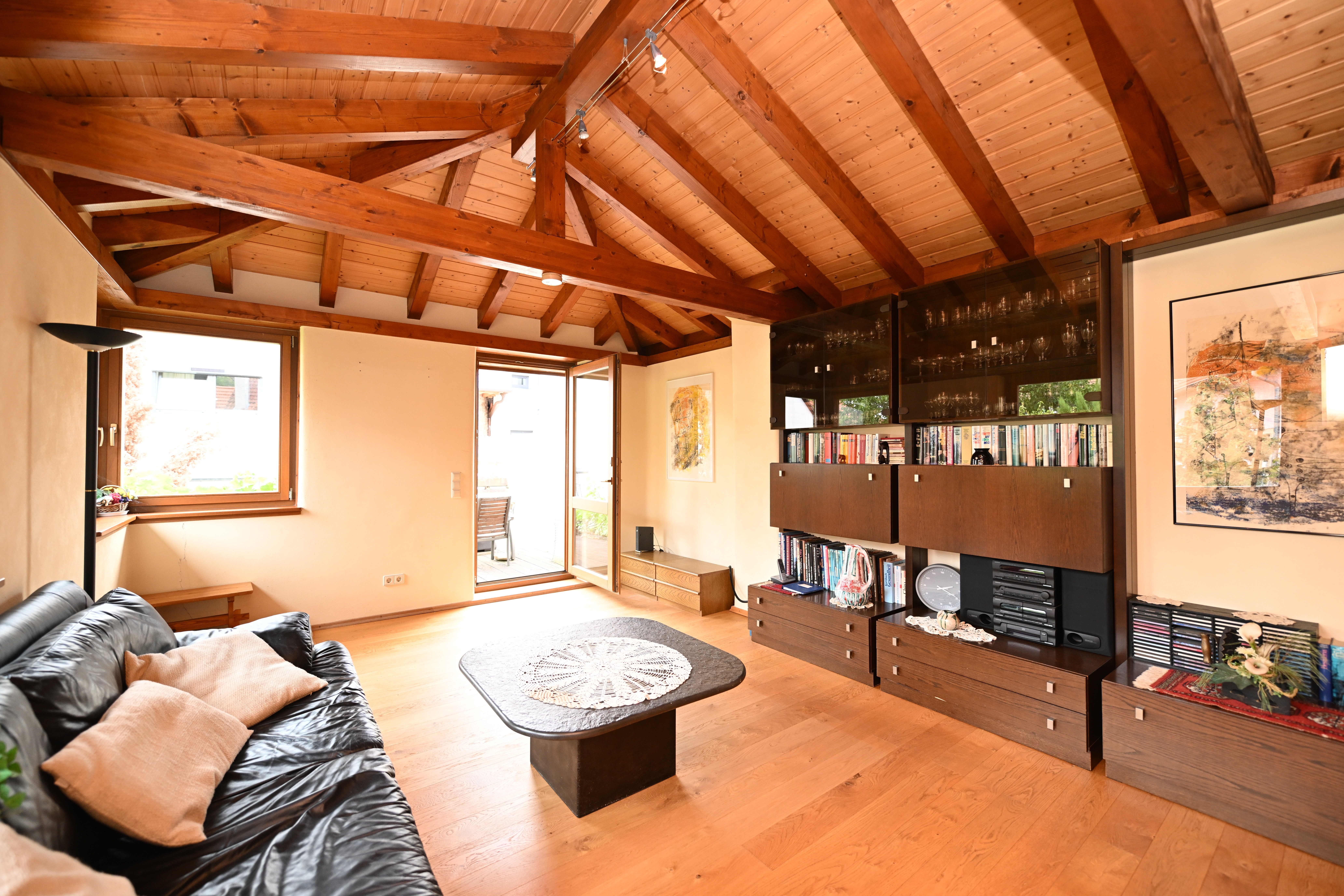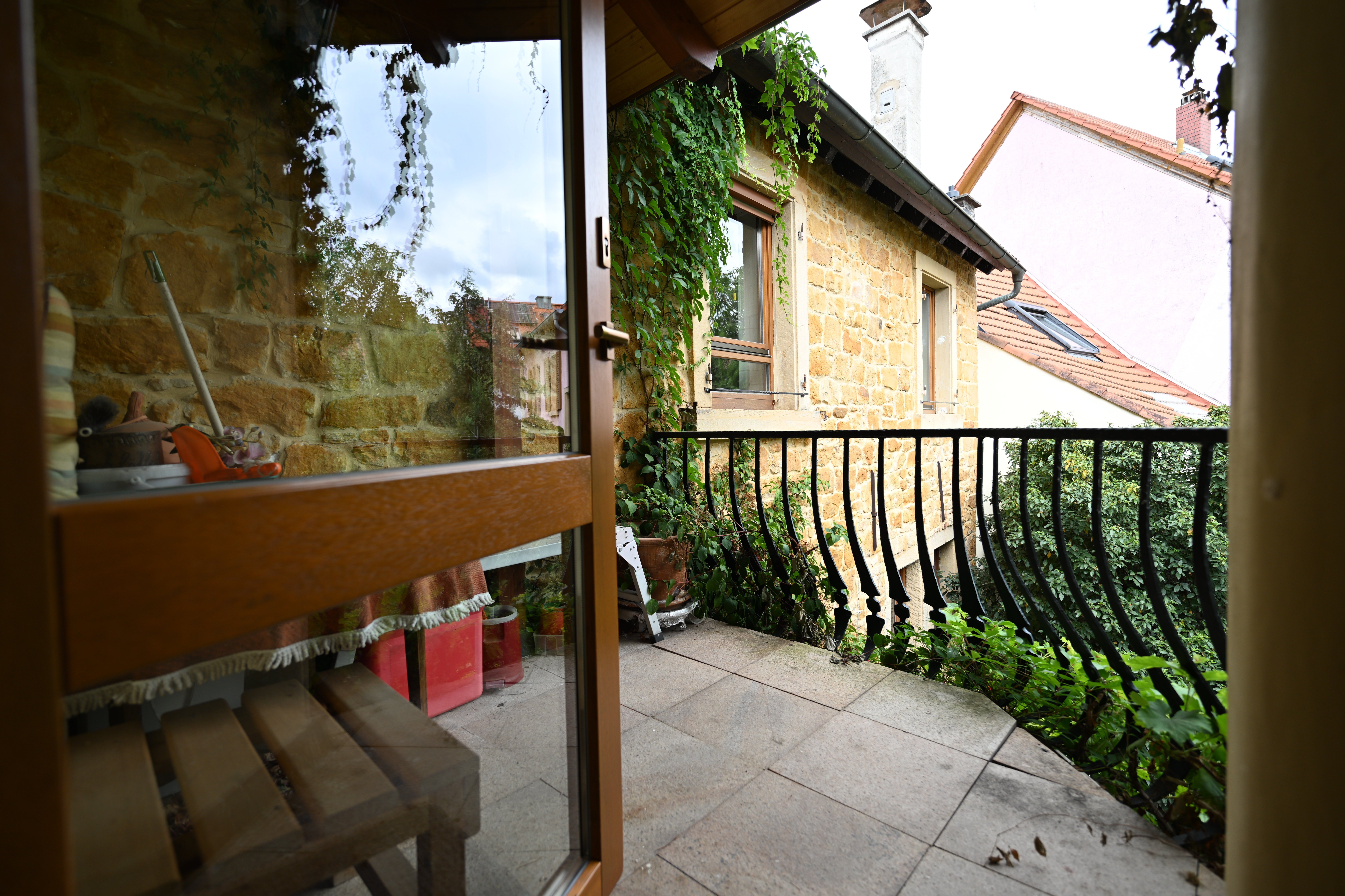 Zwei Balkone laden zum Durchatmen ein, während die Terrasse mit angrenzendem Garten besonders in der warmen Jahreszeit zum Wohlfühlort wird. Der separate Gartenraum erweitert die Nutzungsmöglichkeiten – ob als Atelier, Werkstatt oder zusätzlicher Rückzugsort.